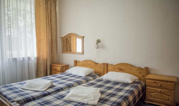 Комплекс состоит из спальных корпусов, отдельно стоящей лечебной базы с водолечебницей и физиотерапевтическим отделением, тренажерного и спортивного залов, зоны для настольного тенниса и библиотеки. На территории можно заняться терренкуром, а также прогуляться в парке.